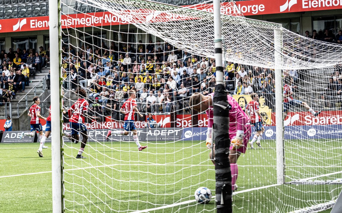 Det går bare ett minutt ut i andre omgang før Start utligner på Sør Arena. Mikael Ugland får ballen på 18-meter, vender opp og sender en kanon i venstre hjørnet av målet. Avslutningen er så hard, og godt plassert at Alexander Pedersen ikke når bort på den, 1-1 i Kristiansand.